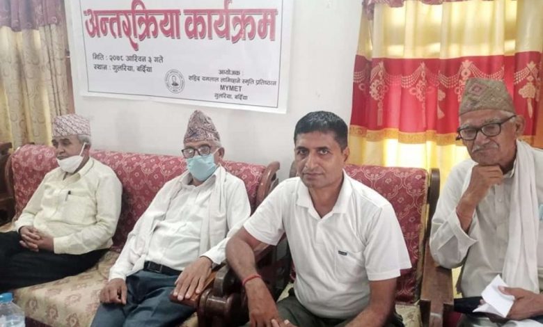 यसै गरी नेकपा समाजवादी पार्टी बर्दियाका अध्यक्ष प्रेम पोख्रेलले पार्टीमा एकलौटी ढंगले आफ्नो विचार र काम लादेकोले पार्टी फुटेको कुरा बताउदै शहिद यमलाल राम्रो कार्यकर्ता रहेको देशका लागि लडदा शाहादत्त प्राप्त गर्नु भयो । वहाका परिवार सस्थालाई कस्तो सहयोग गर्नु पर्छ आफु र आफ्नो पार्टी सदैव तयार रहेको जानकारी पोख्रेलले गराउनु भएको थियो ।