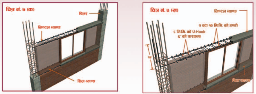 ७) सिल र लिण्टल व्याण्डहरुको निर्माण